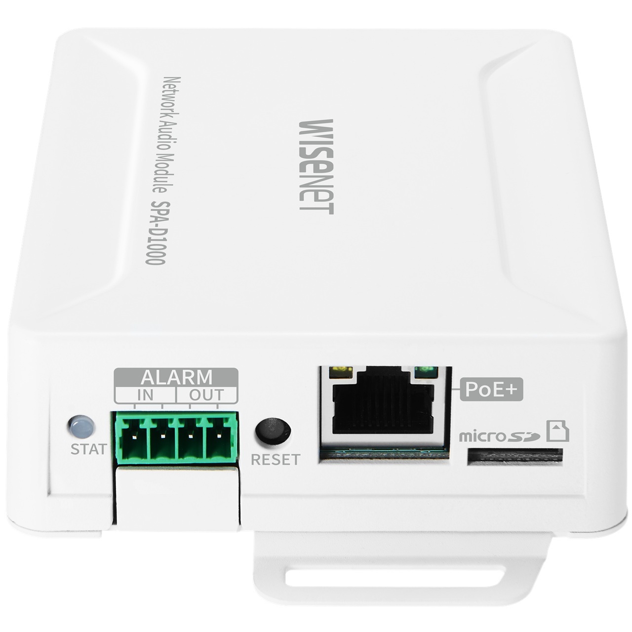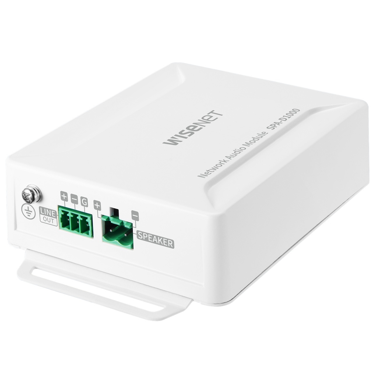 The Hanwha Vision SPA-D1000 is a high-quality IP audio module that can be used to add IP audio to existing analog speakers. It is ideal for a wide range of applications, including background music, paging, and security announcements. The SPA-D1000 can also act as a dedicated controller, allowing all speakers to operate with the desired functions. The SPA-D1000 features a built-in 10W Class D amplifier, ensuring clear and intelligible audio reproduction in any environment. It also supports PoE/PoE+ (Power over Ethernet), so only one cable is needed to provide both power and audio. The SPA-D1000 is easy to mount and is configured and controlled via web browser. Key features include